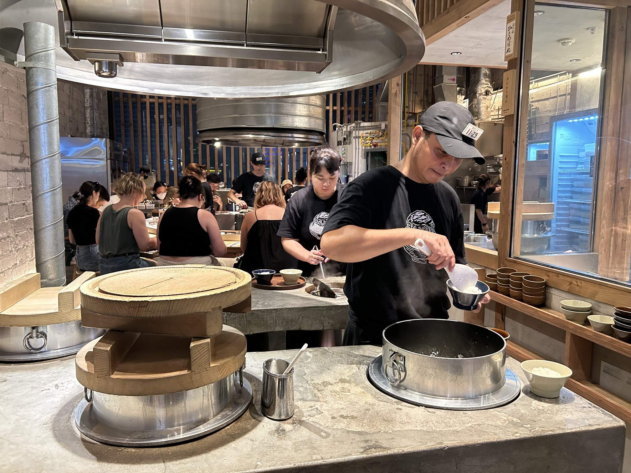 - Just Cooked: Rice is cooked continuously in a traditional Hagama pot, which circulates heat evenly for a fluffy texture. According to the Hikiniku to Come Thailand Facebook page, they use the Japanese variety “Hitomebore” (ひとめぼれ) from Iwate Prefecture, known for its soft, chewy texture, sweet aroma, and rich umami flavor. They cook rice in batches throughout the day and never serve any that has been left out for more than 20 minutes!