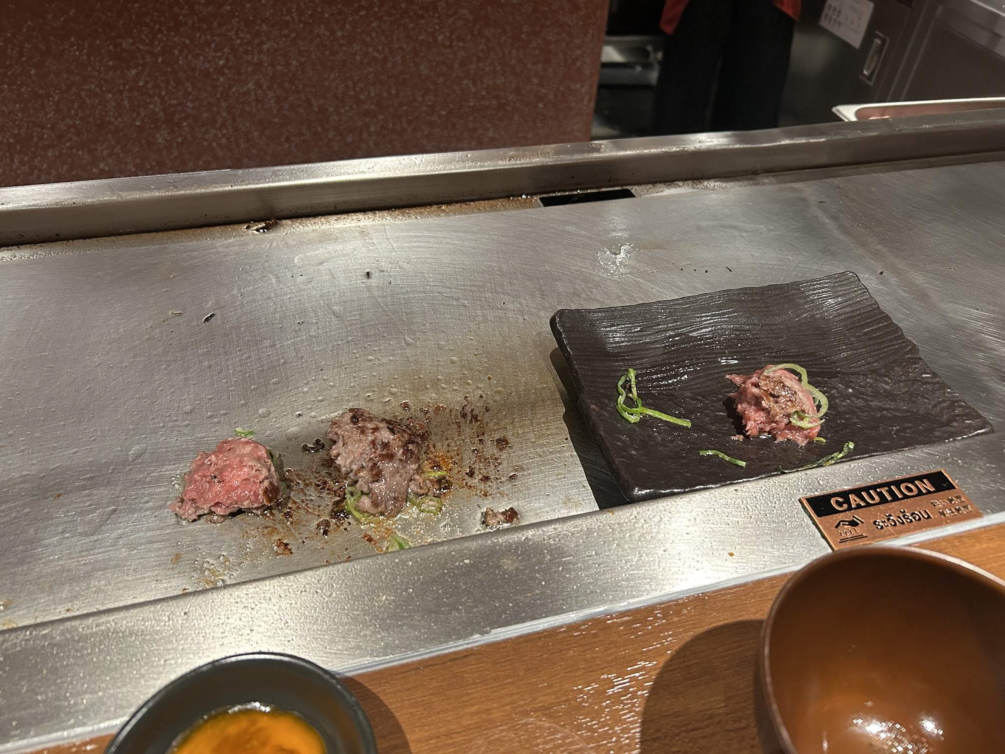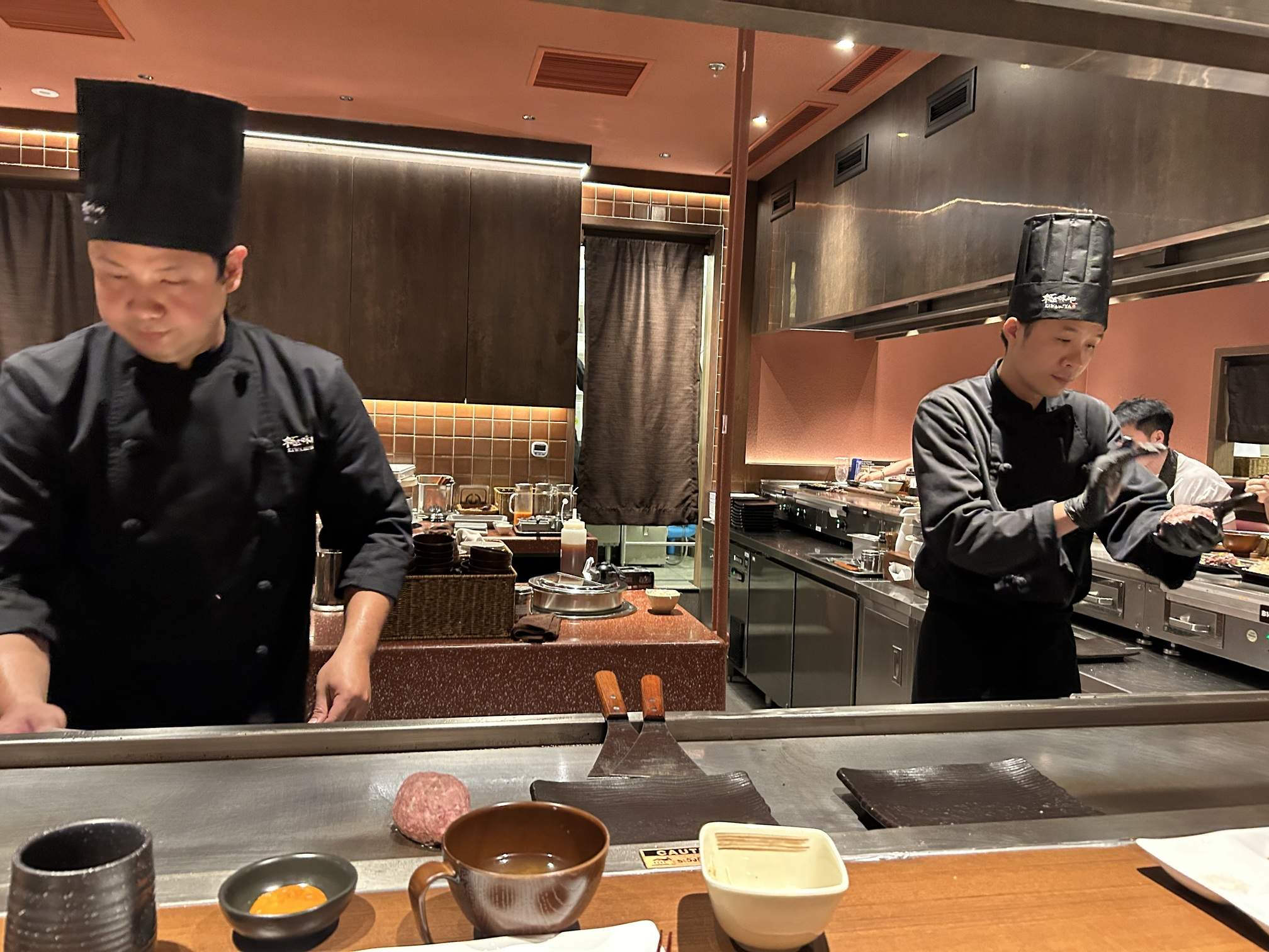 Total wait: Exactly one hour. The pacing is slow because resetting and deep-cleaning the specialized teppan grills takes time. If 11 groups take an hour, a “long” queue could easily mean a 3-hour commitment!