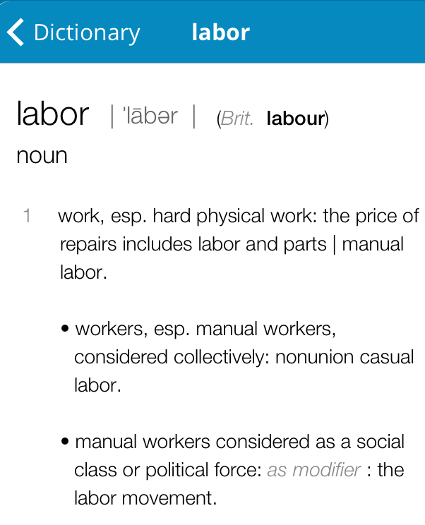 So are they like above labor, in a different class altogether vis-a-vis the rest of the common people? That piqued my interest and I looked up the definition of labor.
