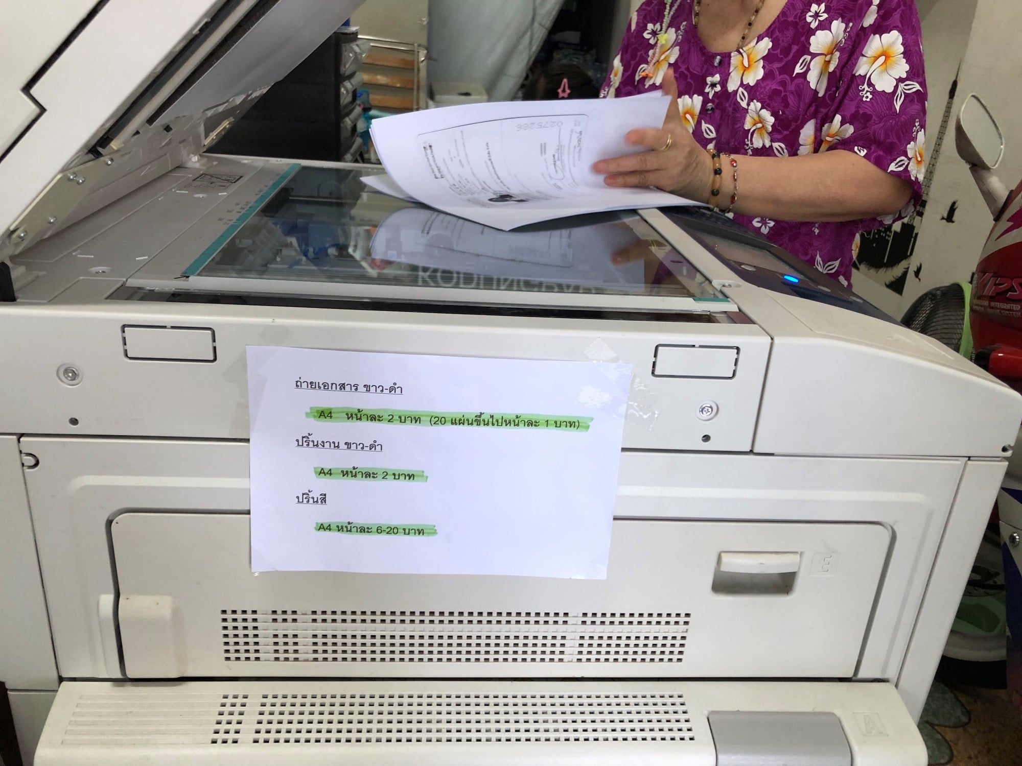 If you are searching on Google Maps, the magic words are ร้านถ่ายเอกสาร (Raan Tai Ek-ka-san)—literally “shop that takes a photo of documents.”