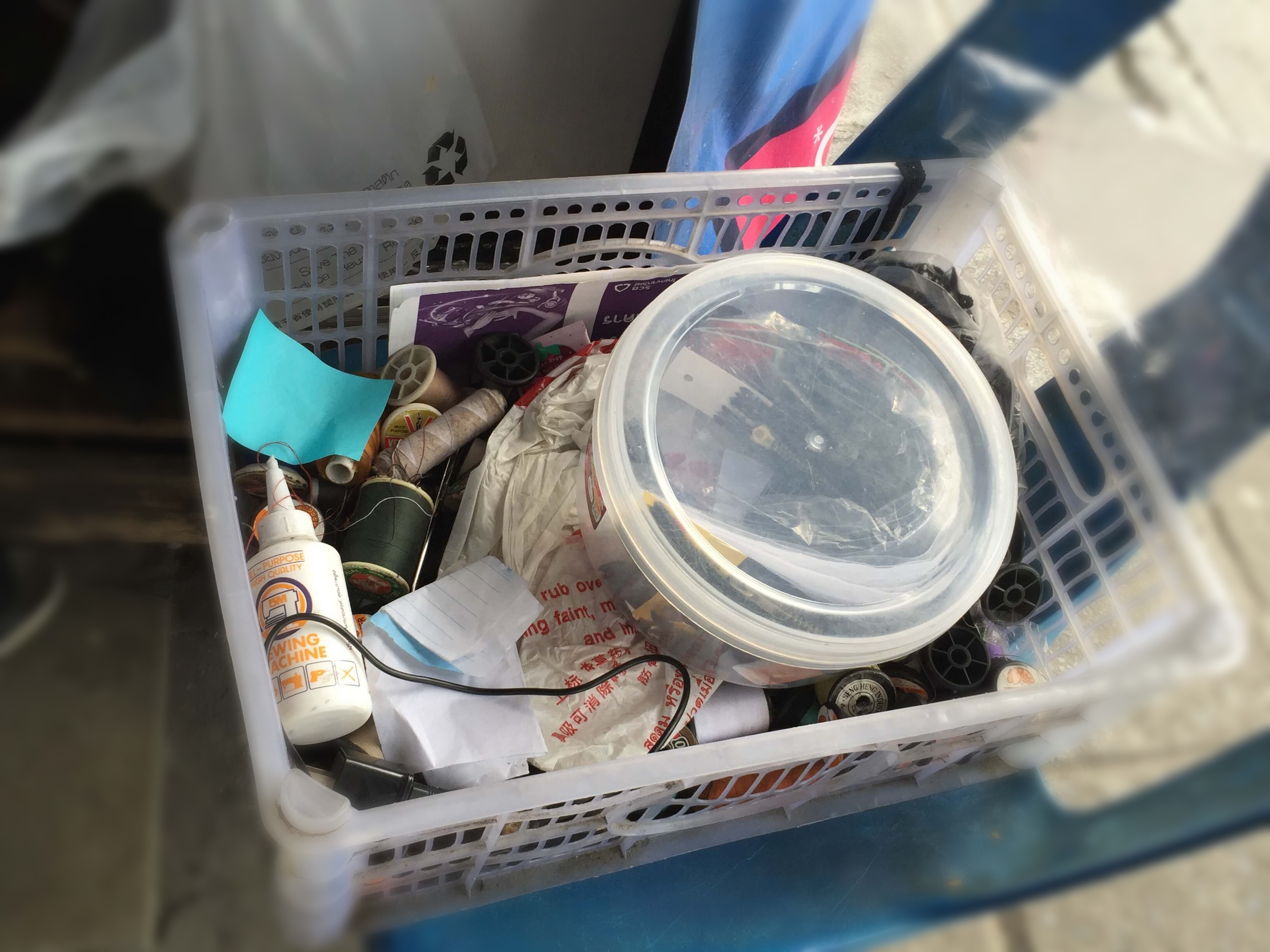 As someone without any sewing skills … zilch, zero, zippo, nil, nada, I rely on this Aunty Seamstress for simple sewing repair in Bangkok. This elderly aunty plies her trade almost everyday, sewing by curb-side in my neighborhood. A simple sewing job costs around 20 baht. I have paid 50 baht or so for something more elaborate.