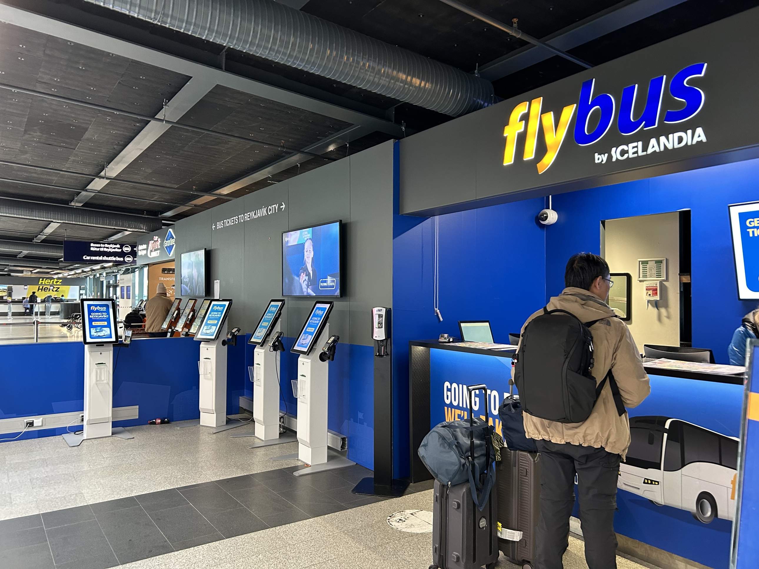 After clearing immigration, we headed straight for the Flybus counter, opting for their convenient self-service machine. I believe we paid 5,199 ISK per person for a one-way ticket for Flybus+ (including shuttle drop-off). Unfortunately, immediately after purchasing our tickets, we saw a notice at the Flybus counter that the next bus wasn’t departing for what felt like an eternity – a frustrating wait that could have been over an hour, possibly even two. This was definitely not the quick start we’d hoped for after our flight.