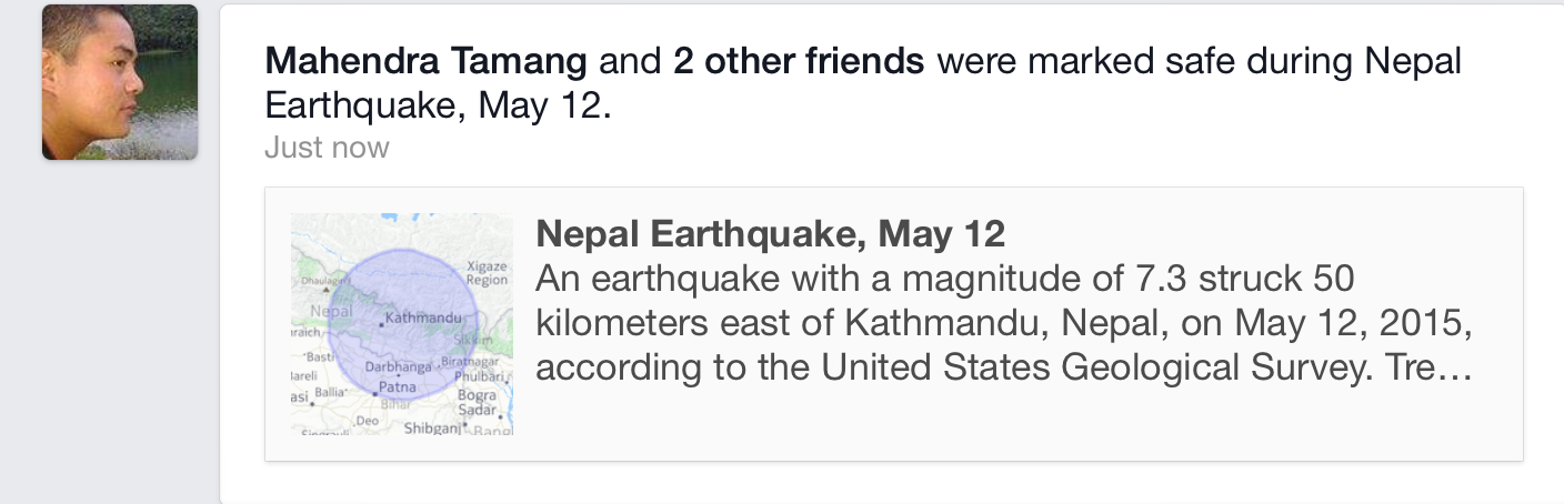 All In Between Mahendra Tamang also marked safe during Nepal Earthquake, May 12 May 13, 2015 Editor #PrayforNepal Share this:Share Share on Facebook (Opens in new window) Facebook Share on X (Opens in new window) X Email a link to a friend (Opens in new window) Email