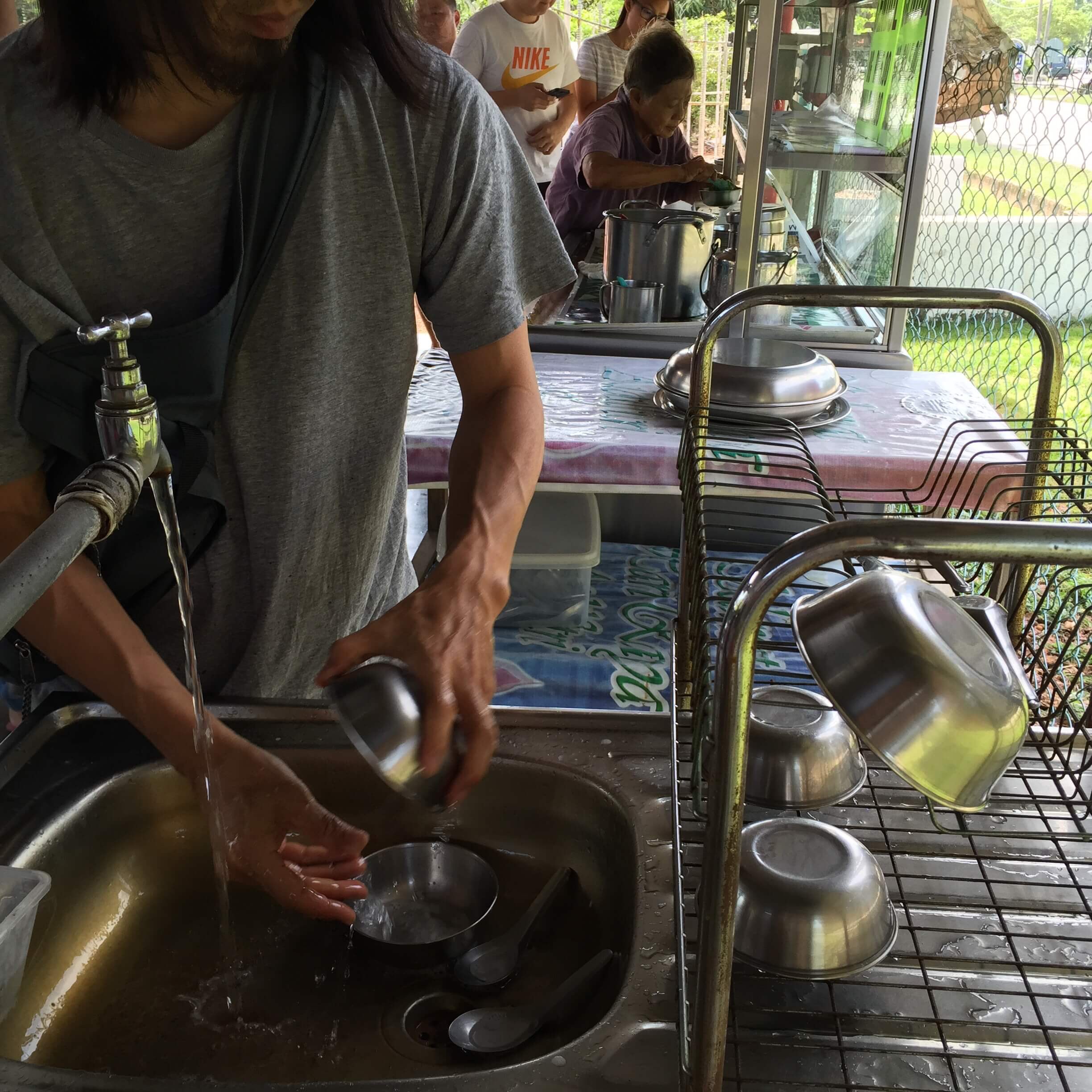 For newbies, a lot of things are DIY, except for queuing up. Everything else is DIY. Put the correct amount in drawer (big bowl RM 5, small bowl RM 4), carry your bowls to your table, and wash the bowls and spoons afterwards.