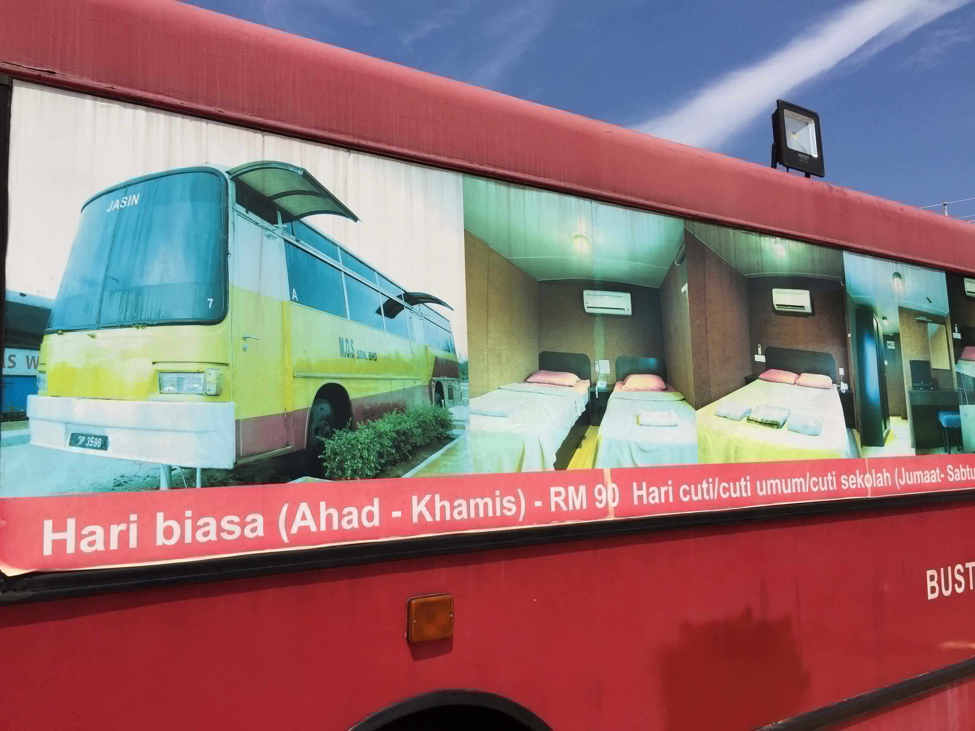 We passed by Bustel en route to Aunty Koh, so we stopped by to check out the bus-hotel. Why would someone want to sleep inside a refurbished bus? As a local growing up in KL, bus was our last transportation resort. And it brings back horrible memories of “masuk dalam, masuk dalam” (step inside to make more space for passengers), long wait for buses, and hot and sweaty ride (no aircond bus long time ago).