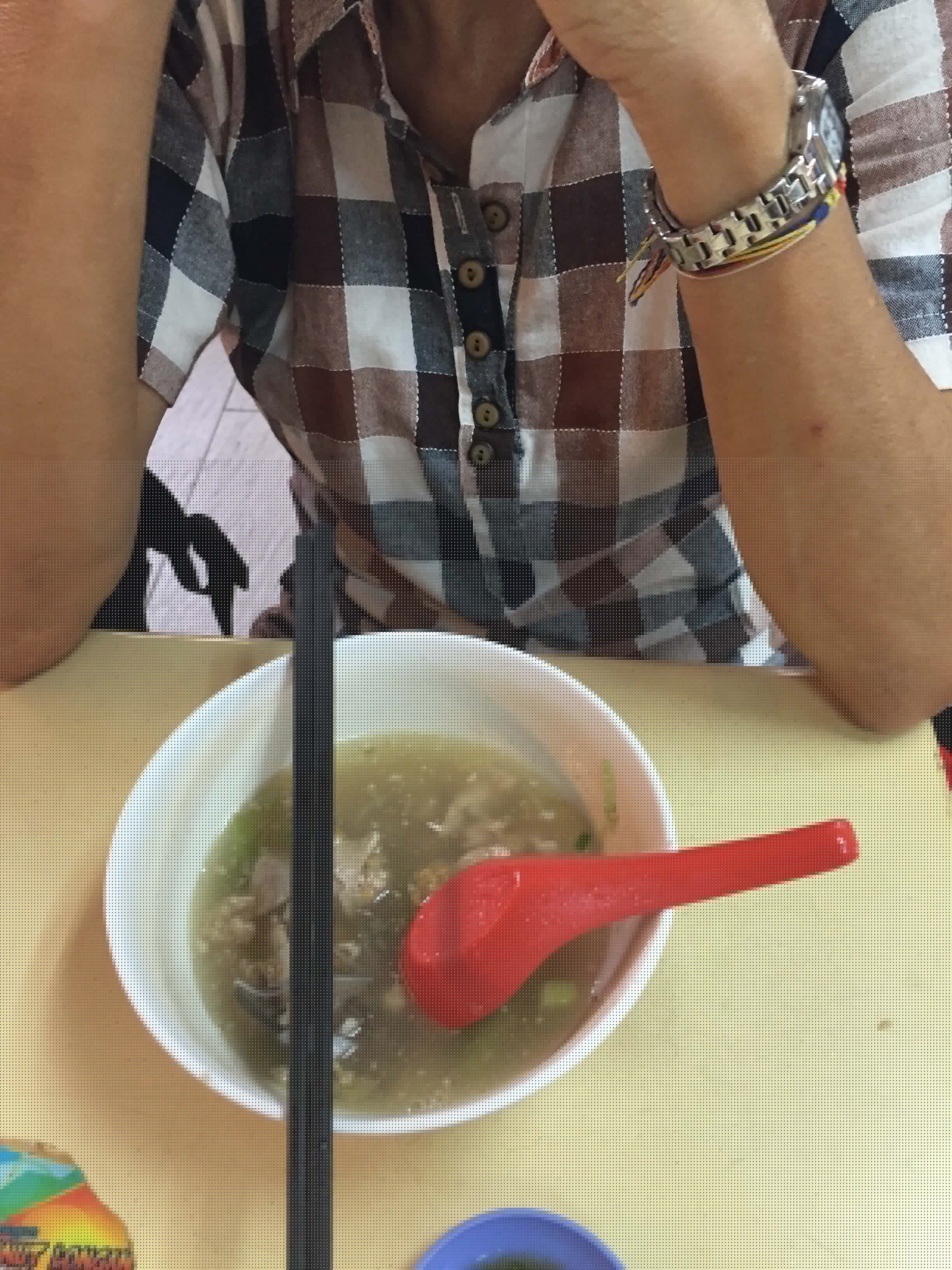 She didn’t exactly gave her two thumbs down, but she commented that the soup is too porky, that it is not clear enough .. and err … too much porks.