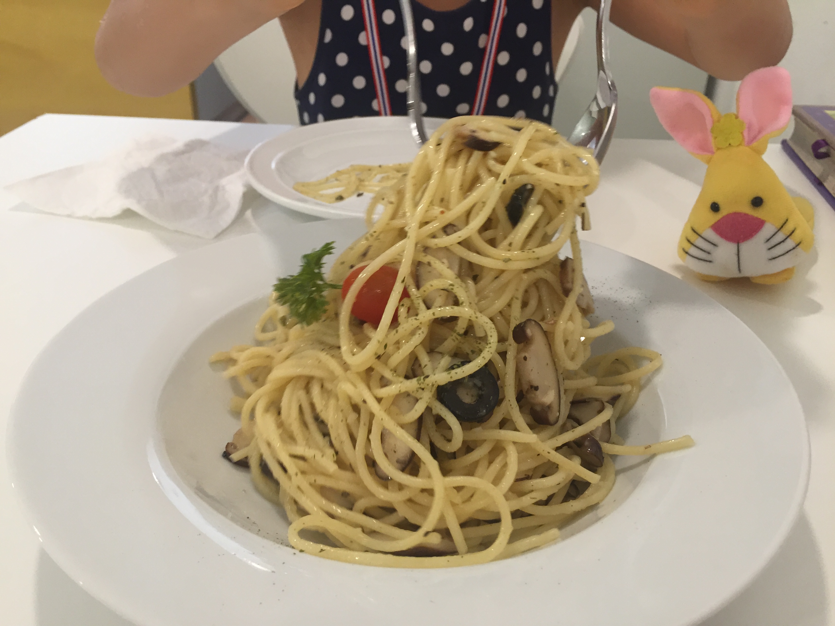 Spaghetti Mushroom Aglio Olio (RM 16.90). We ordered it without any chili, and they obliged without any fuss. It was my niece’s first aglio olio, and she enjoyed it.