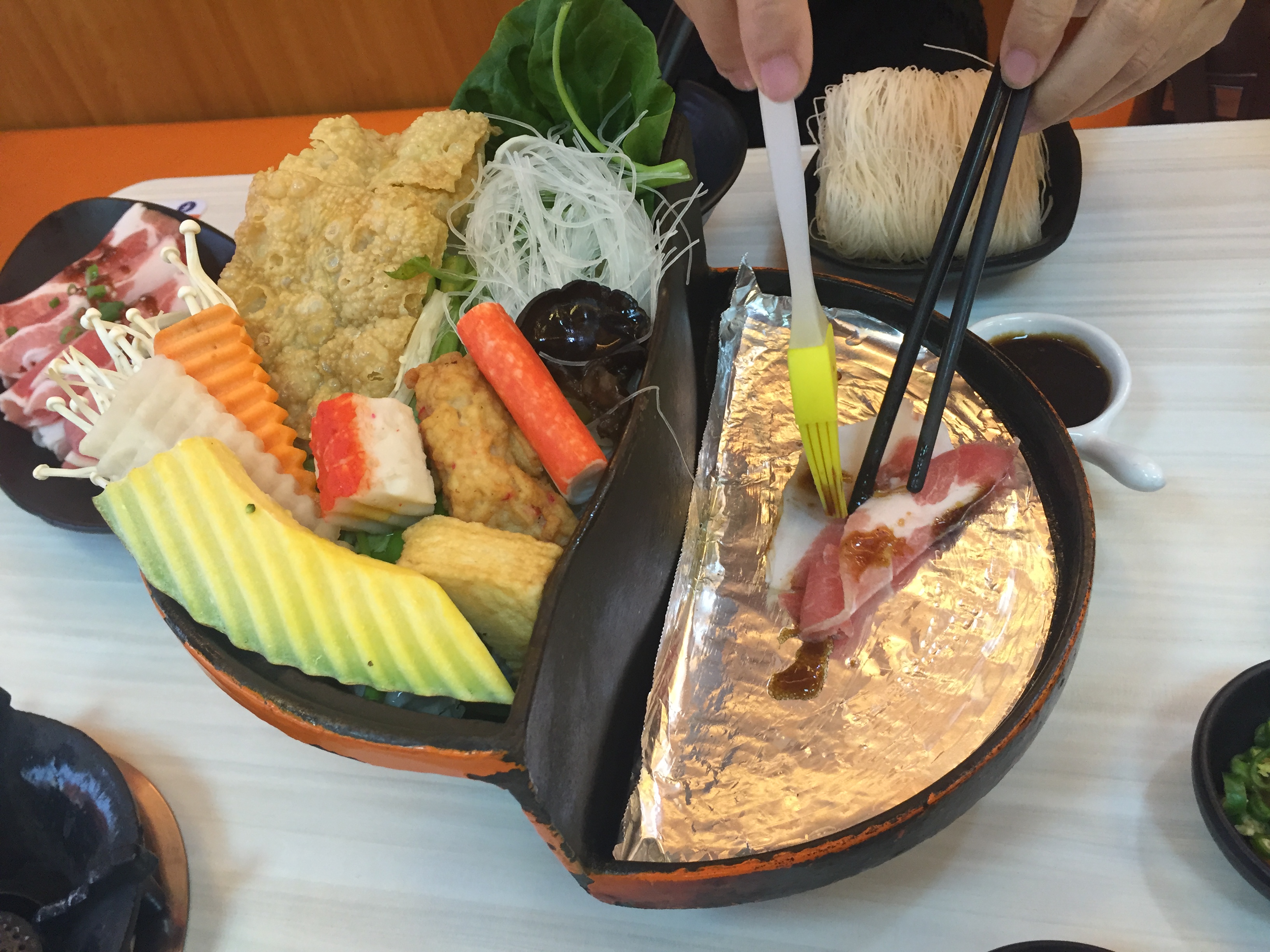 “Half bbq, half soup, yeah I want this,” Jo, said. She got the best of both world: bbq and steamboat.