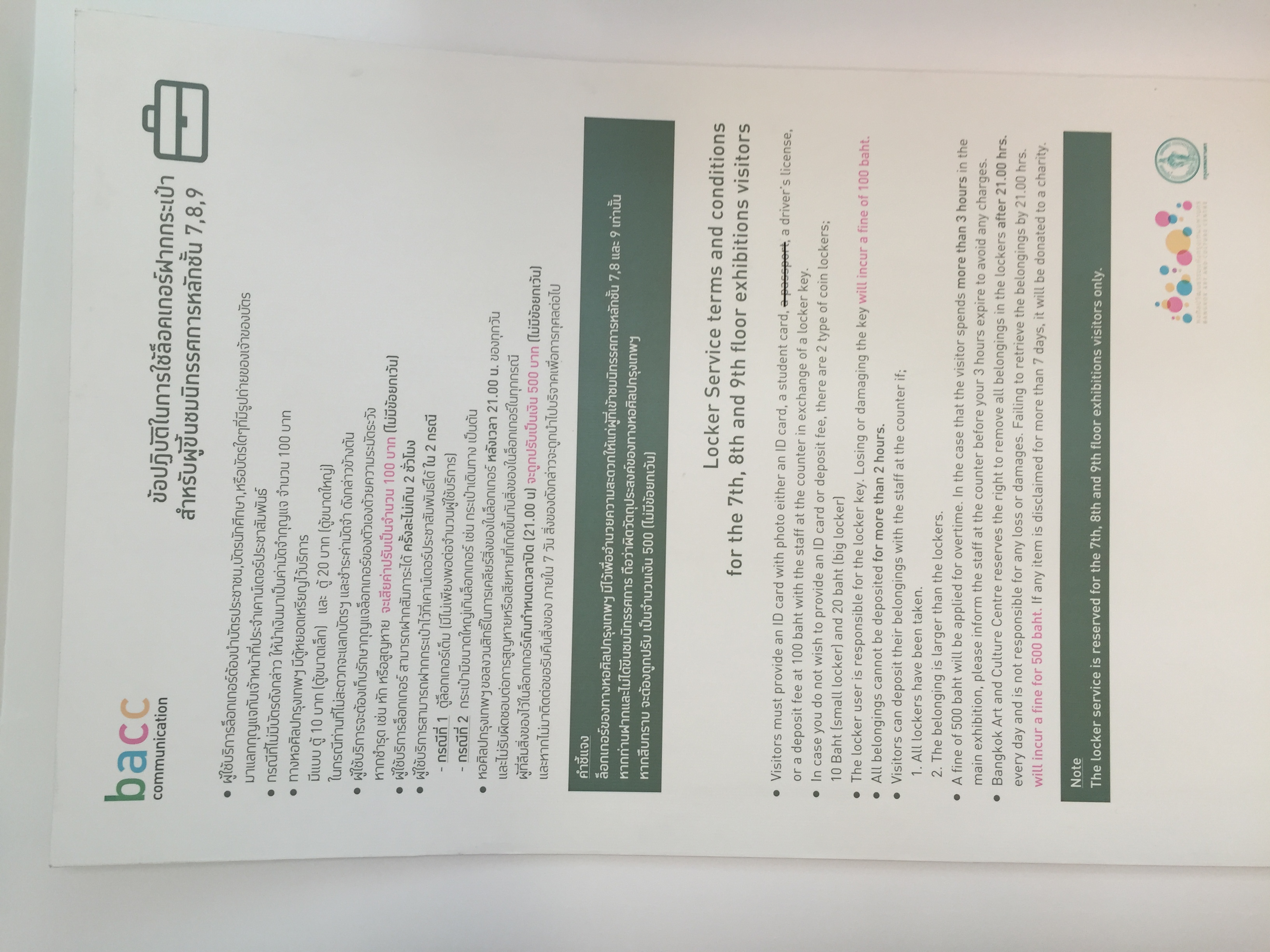 You’ll need to deposit your bags to access the Main Exhibition floors on the 7th-9th floor. Free locker service, but you need to hand over your ID card (with photo) or passport at the Information Counter, 5th floor. Otherwise, a 100 baht refundable deposit works too. If you do not wish to provide an ID card or deposit fee, coin-operated lockers are available too – 10 baht (small locker) and 20 baht (big locker). All belongings cannot be deposited for more than 2 hours.
