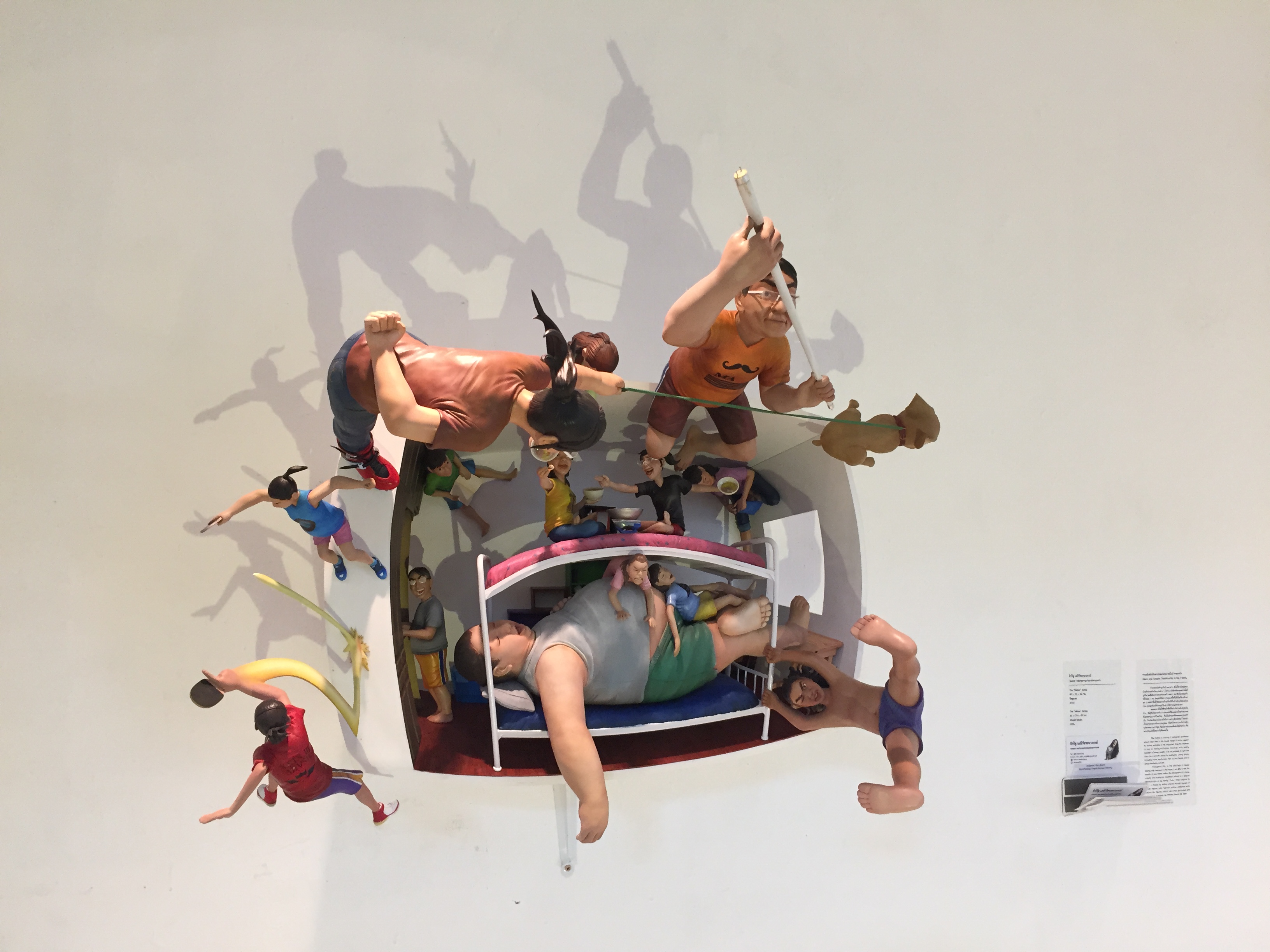 “Warm & Chaotic Relationship” captured my attention, because I can relate this to Aunt Chai’s family at Pad Riew, where home is also used for business. The artist’s home is also used to run a restaurant business, where most spaces are used for various activities. The shortage of space, means everything are on ‘sharing basis’ .. and the artist feels the warmth of love.