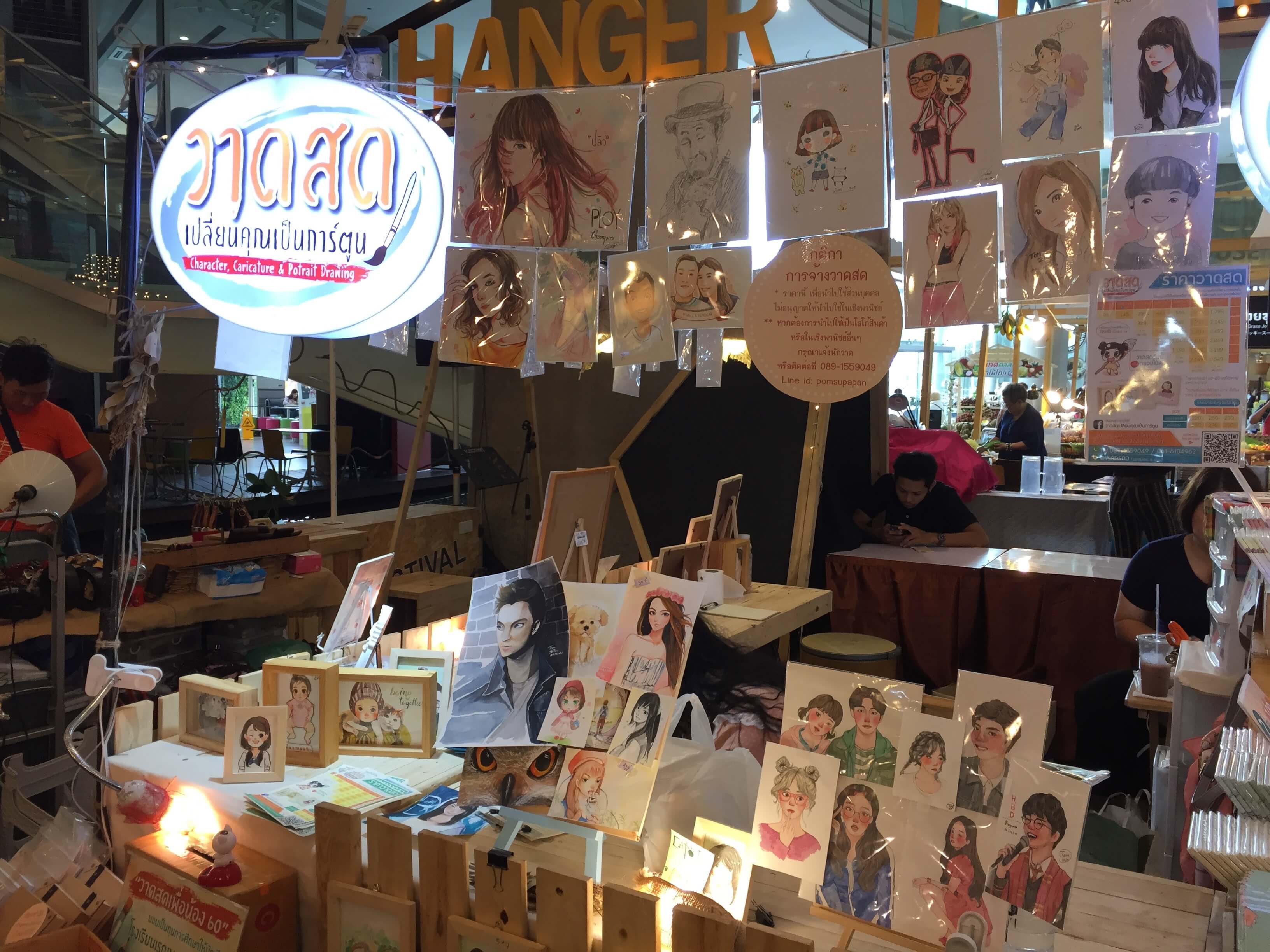 Caricatures make unique presents, especially for a once-in-a-lifetime occasion. It was my elder brother’s wedding – as an advocate of personalized gifts, I wanted to give the groom and bride a caricature artwork on their wedding day. Hunting for caricature artists in Bangkok, lo and behold, I stumbled upon Wadsod วาดสดเปลี่ยนคุณเป็นการ์ตูน at The Esplanade mall, at Ratchadapisek.