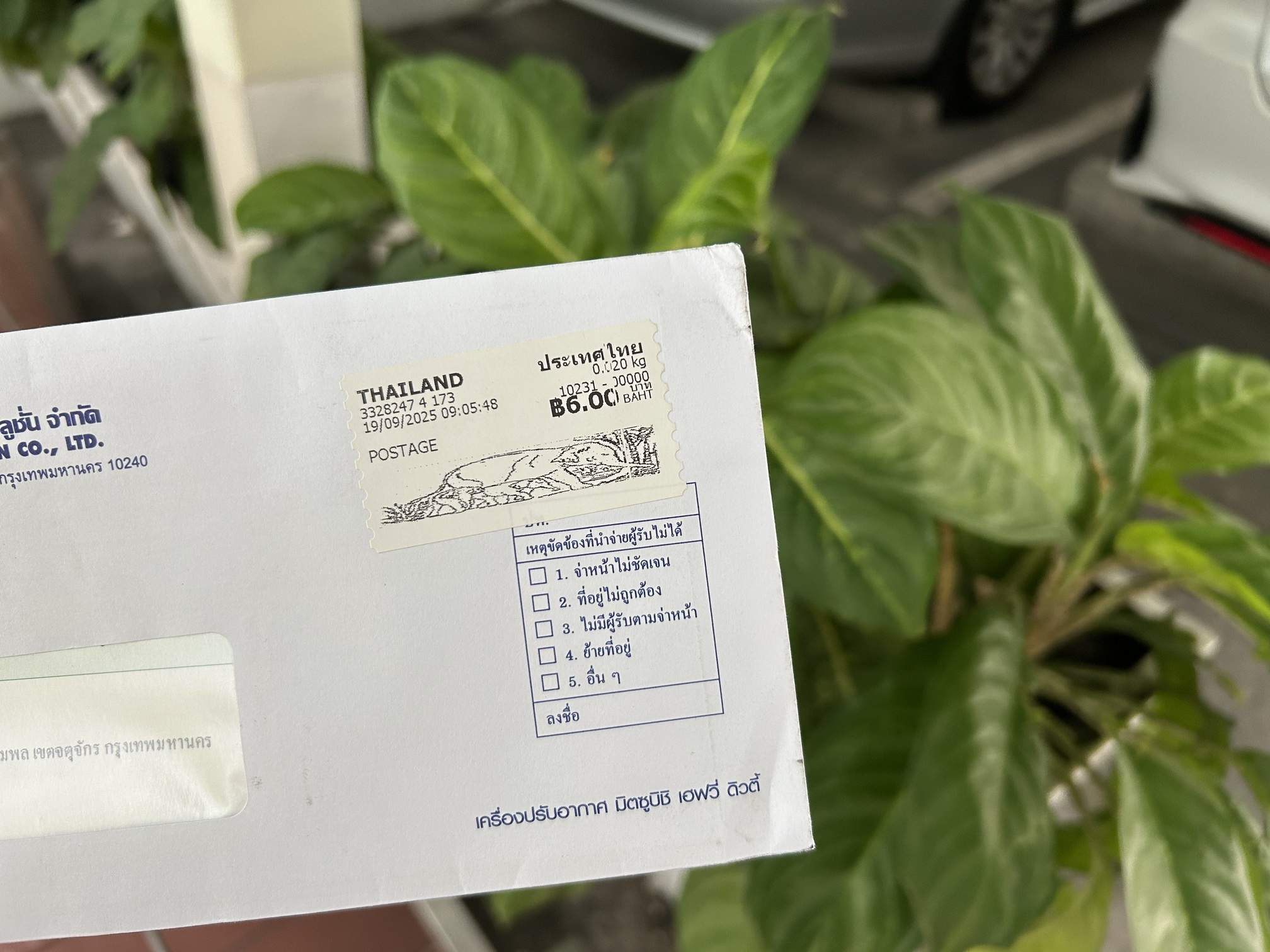 When mailing a letter, standard practice in Thai post offices is to use a “printed” stamp (an adhesive label showing the postage amount).
