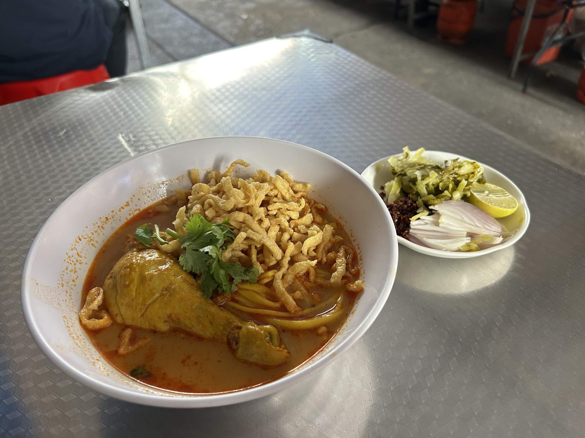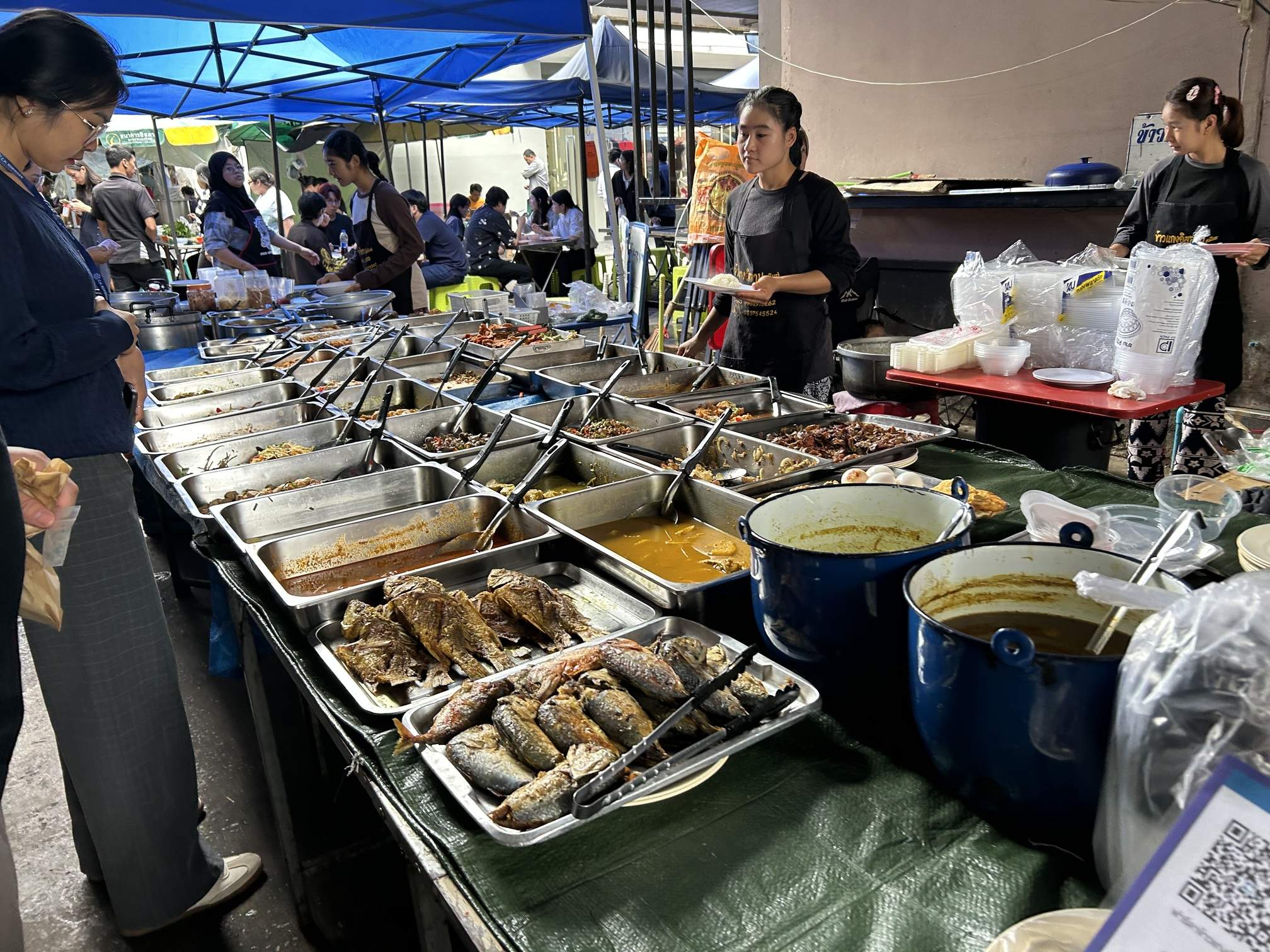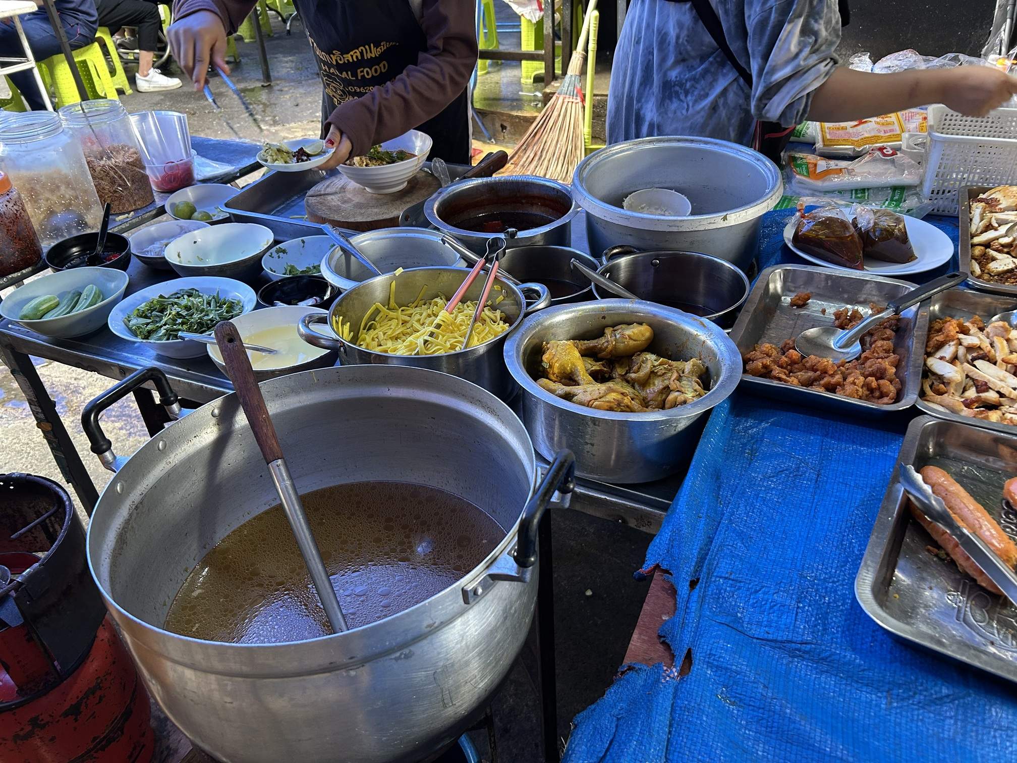 Khao gaeng (ข้าวแกง), which literally translates to “rice and curry,” is like the mixed rice stalls we have in Malaysia. The vendor lays out a variety of dishes, and you choose what you want with your rice. This particular stall was doing a brisk business, offering a tempting selection of curries and other dishes, including even khao soi.