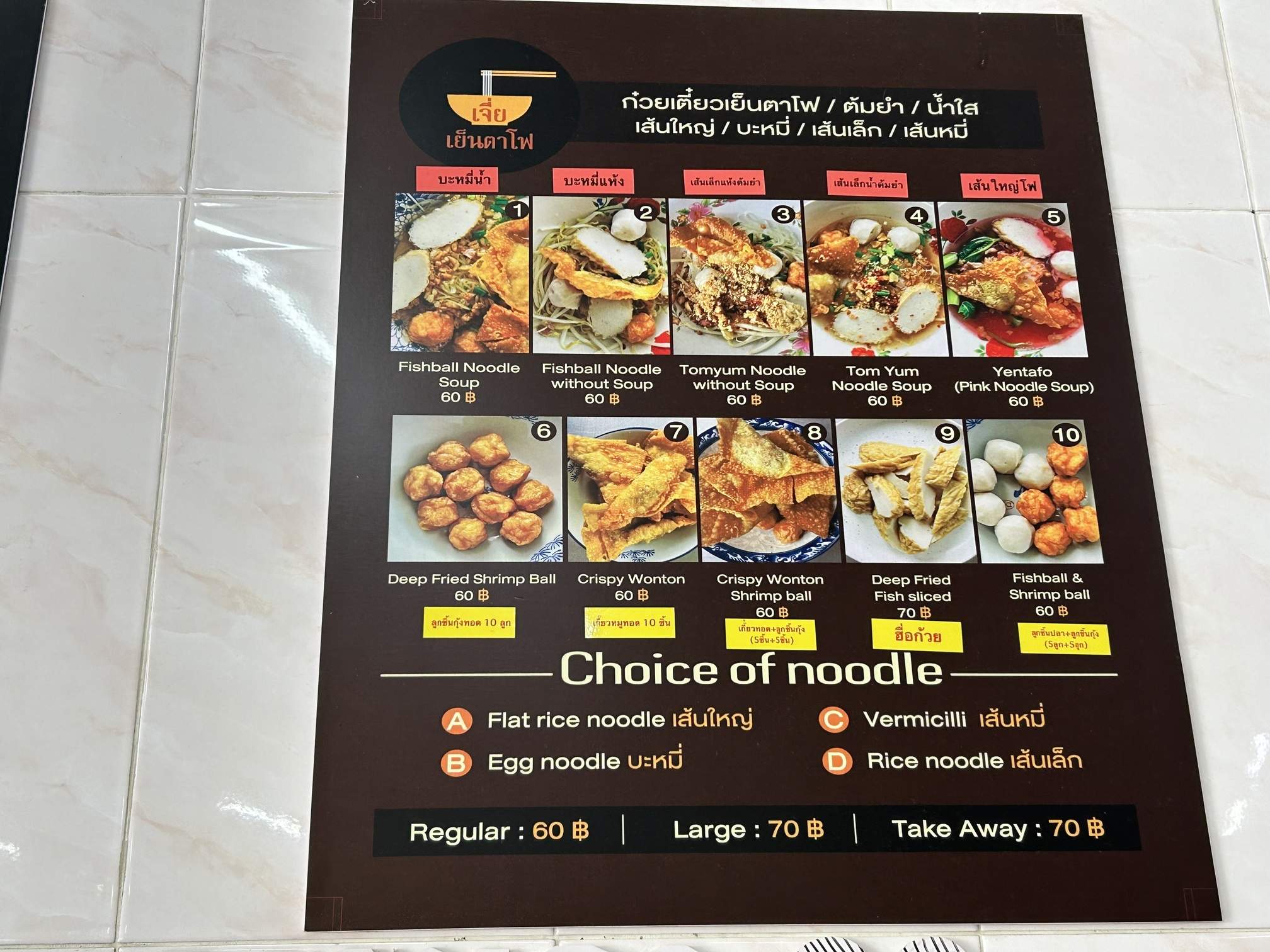 - Fishball Noodle Soup (60 baht): To compare, we also ordered a standard fishball noodle soup. While perfectly fine, it was quite plain compared to the vibrant flavors of the yentafo