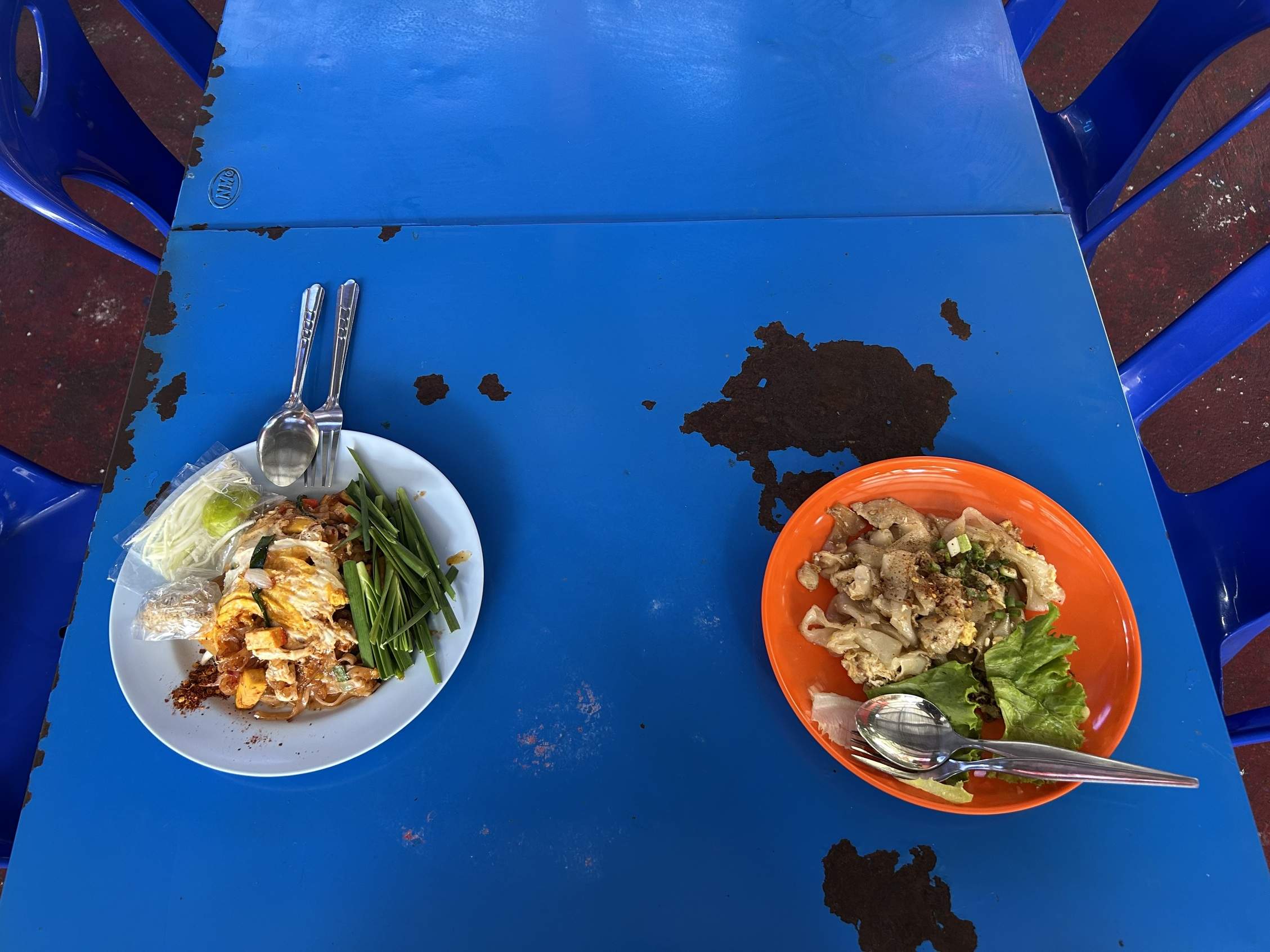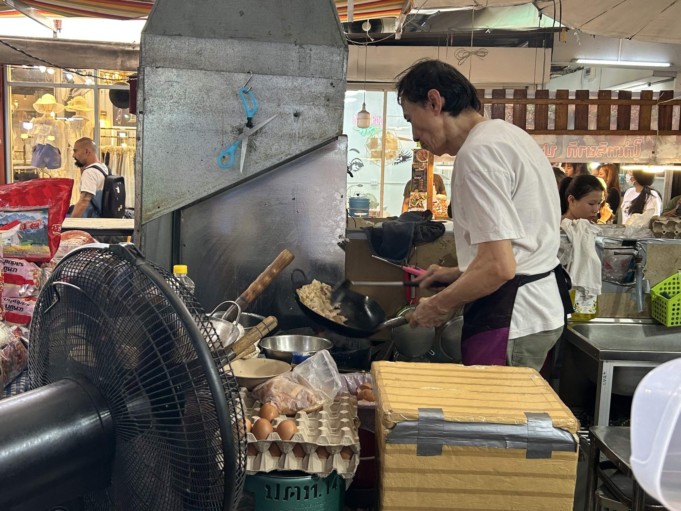 This market truly caters to local wallets, making it an incredibly affordable place to eat and shop. I settled on a delicious plate of ก๋วยเตี๋ยวคั่วไก่ (Kway Teow Kuo Gai), a stir-fried rice noodle dish. My “รวมมิตร” (mixed ingredients including seafood and chicken) version was just 80 baht, while the standard is typically 55 baht – an absolute steal! There’s also an “economy” fried rice and noodle stall right by Ratchadapisek Road, offering every dish for just 20 baht each!