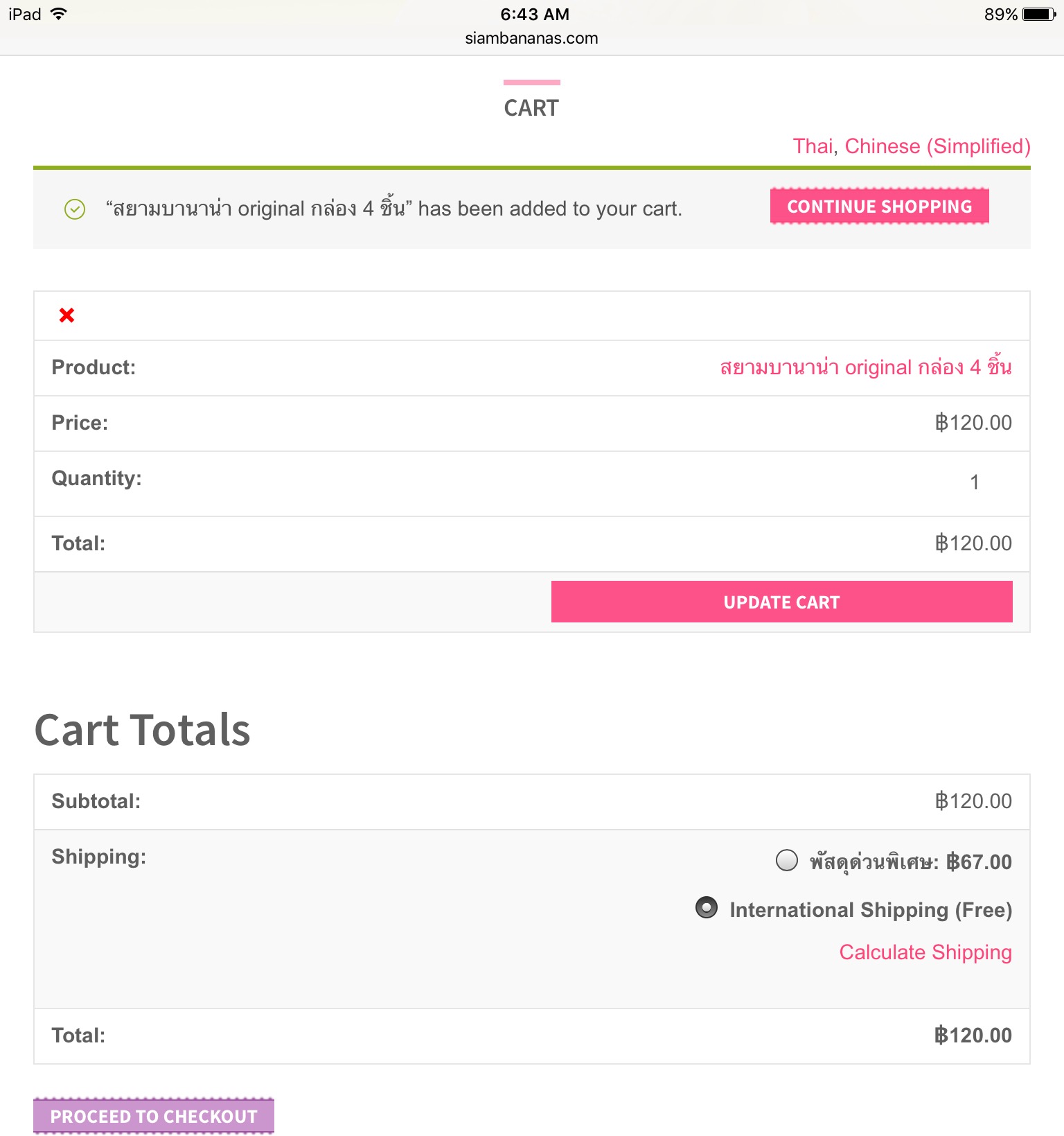 You will also be able to buy it from Siam Banana’s website here http://www.siambananas.com. Imternational shipping is (indicated as) free, or 67 baht for express shipping. Not sure whether there is any min purchase requirement, and on their geographical coverage area.