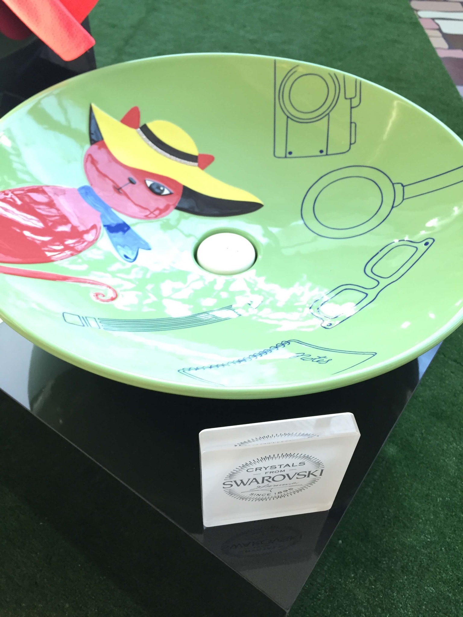 See the crystals?The arty-farty cutiebasins have two selling prices: 15,900 baht and 25,900 baht. Thosewith Swarovski crystals are retailing at the higher price.