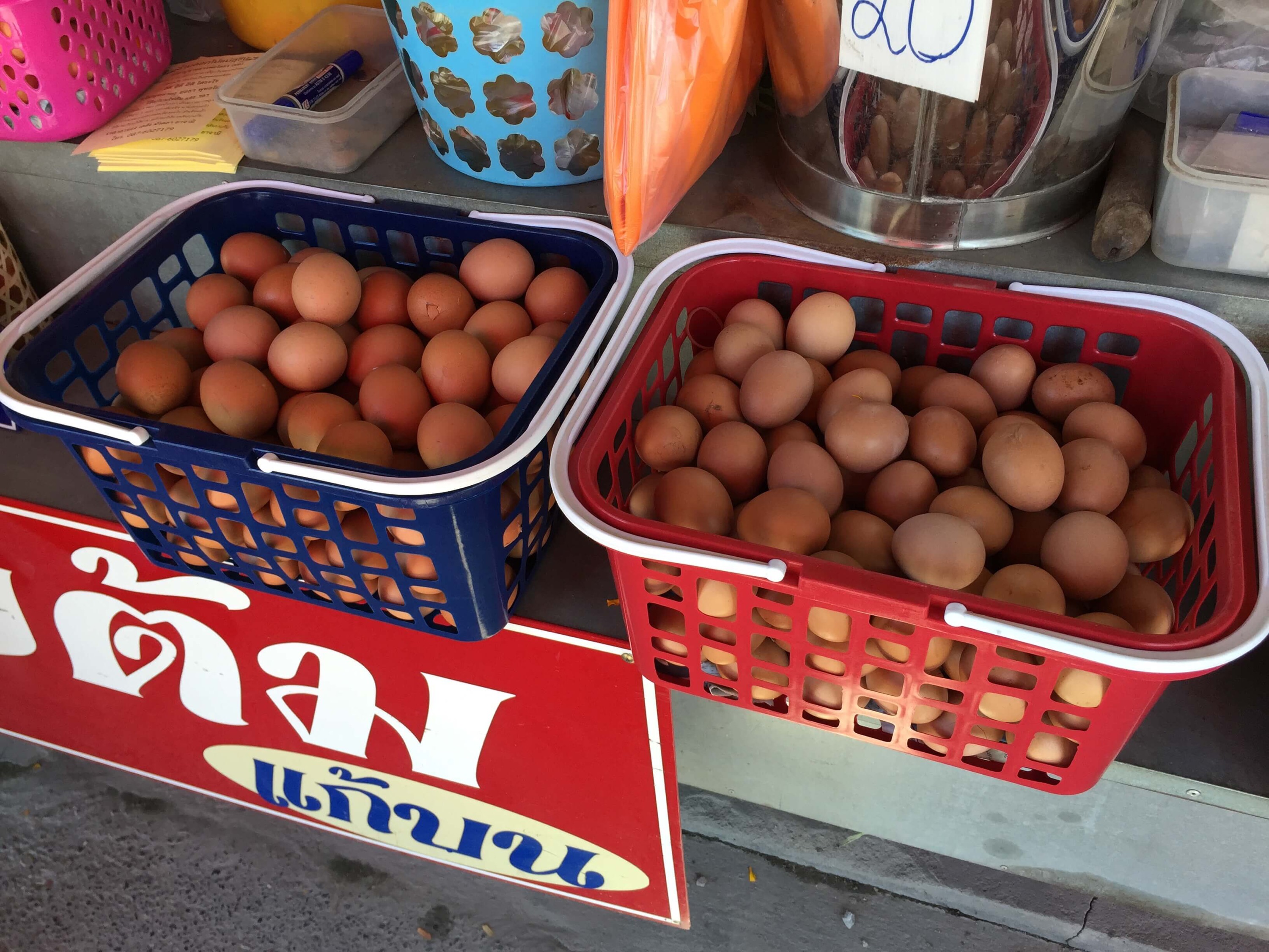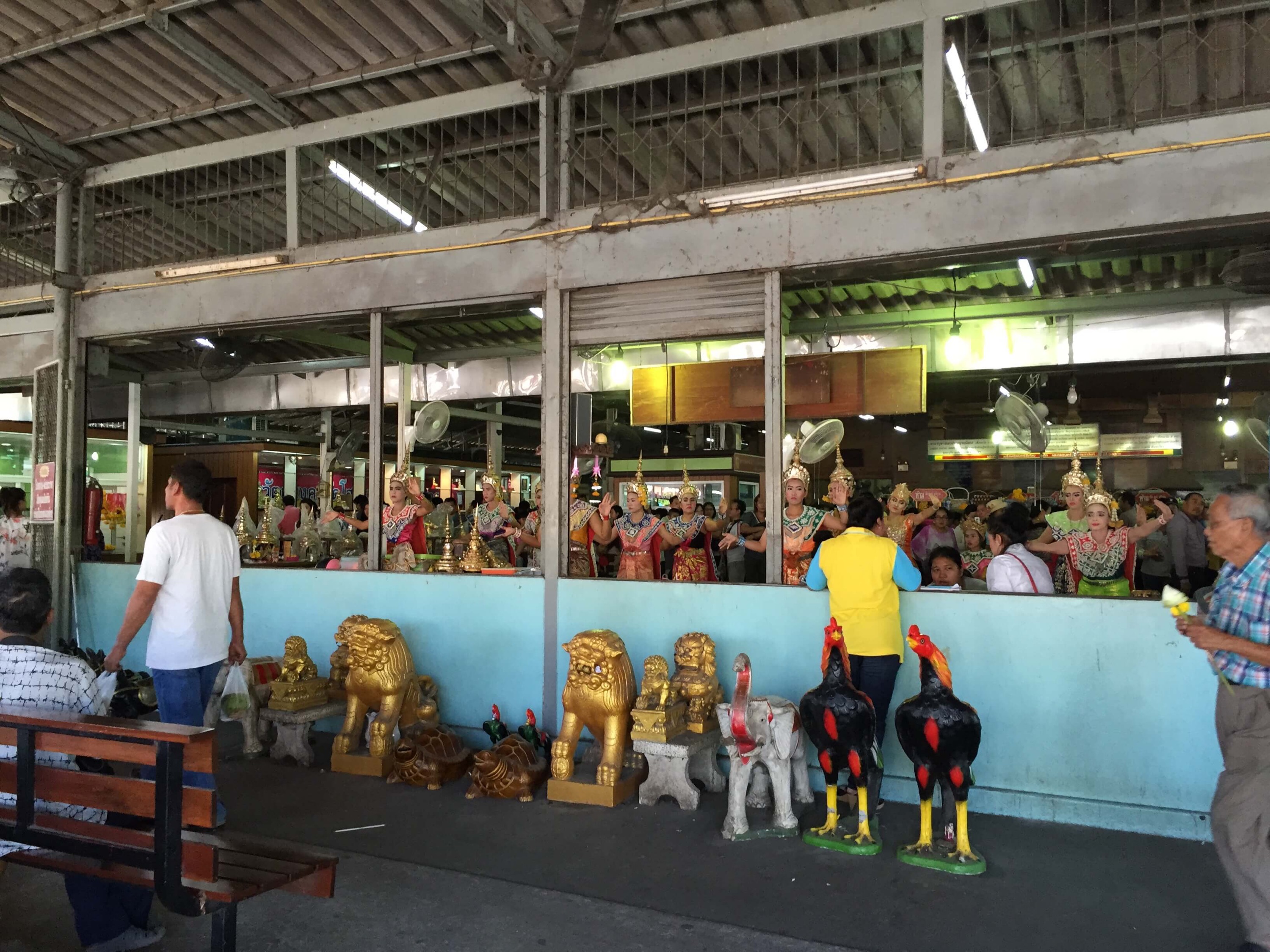 Boiled eggs for sale Temple dancers at Wat SothonOther offerings include boiled eggs, and also Thai dance performance.