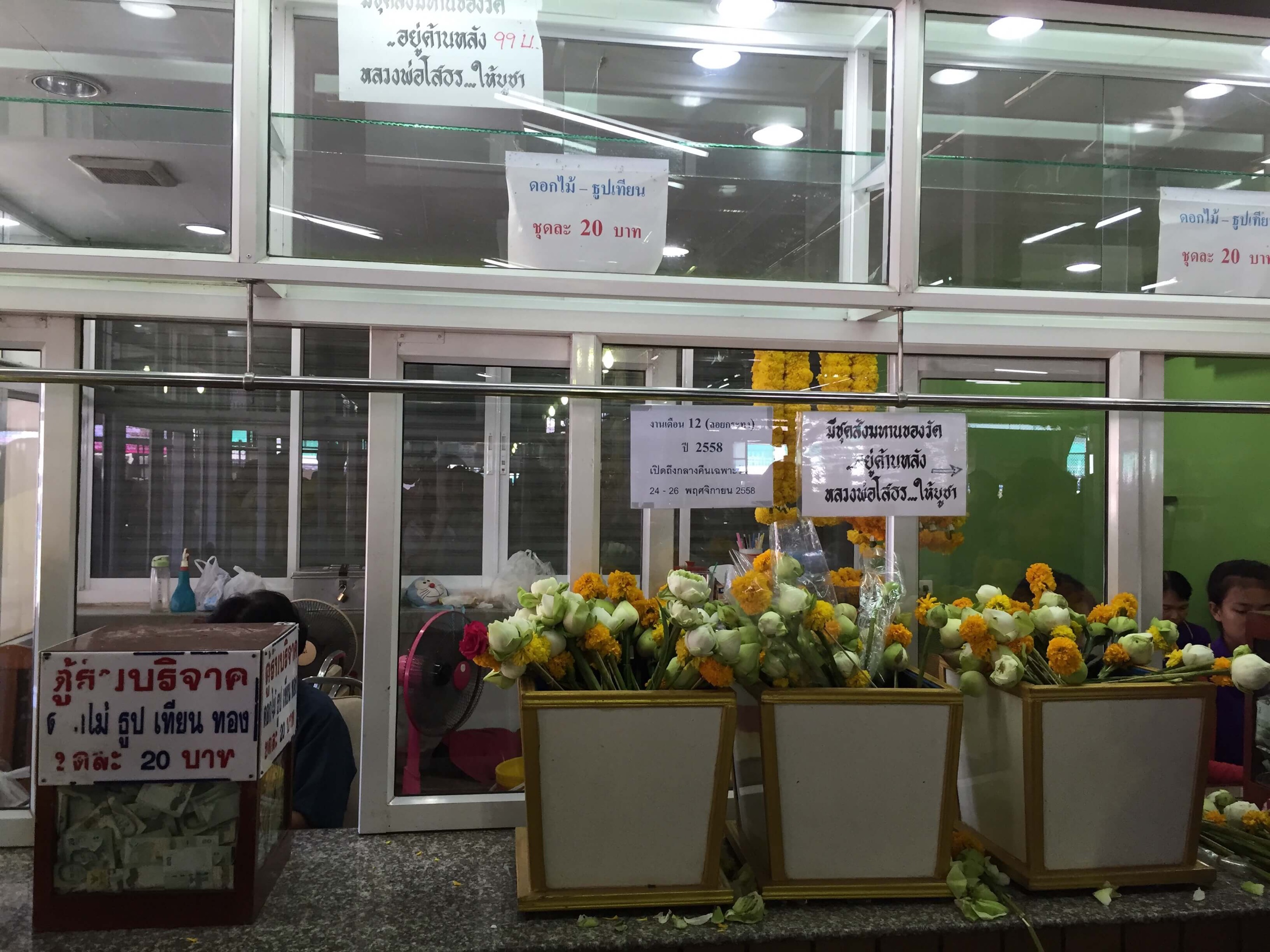Get your joss sticks, flowers, etc with 20 baht donationThere are two parts to the temple: a general prayer and offering area and a main temple area. If you would like to pray, a 20 baht ‘donation’ will give you some joss sticks, candle, flower and also some golden papers, to stick on the Buddha statue at the general prayer area. Donation is up to you, at the main temple area, and you’ll get flowers, to offer to Luang Po Sathon.