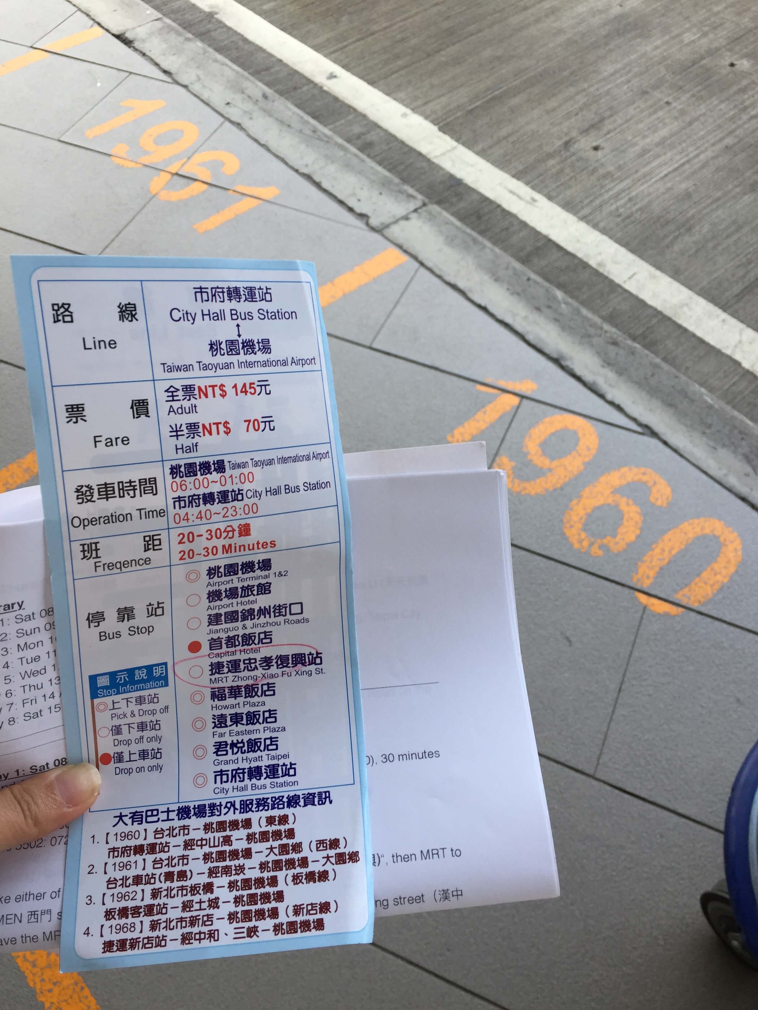 We ended up taking Bus 1960 of “CitiAir Bus” (NT$145) since it is the bus with the quickest departure time.